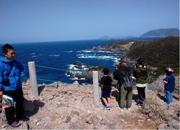 <式根島・神引展望台:Aさん、Yさん、2人とも仲が良いです。>