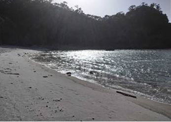 <式根島・泊海岸:式根島の海岸の砂は、白くてとても綺麗な海岸が多いです。>