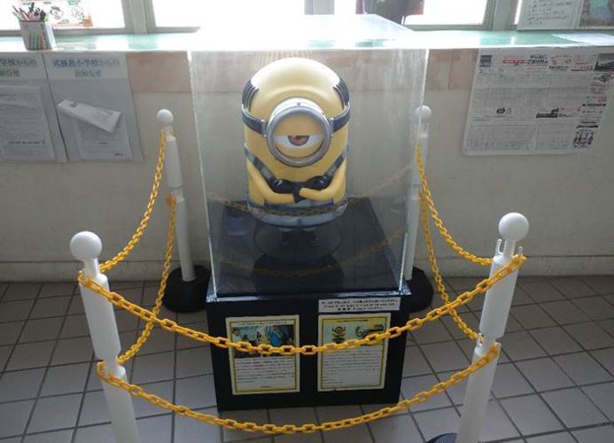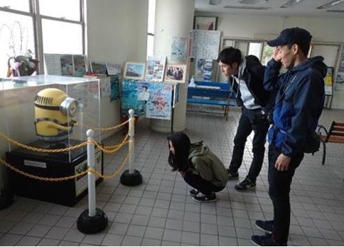 <式根島・野伏港:ミニオンの等身大のフィギュア、世界に20体しかない物です。>