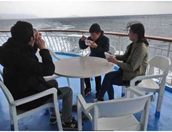 <東海汽船:サルビア丸の中での参加者の撮影:Yさん、Eさん、Aさん>