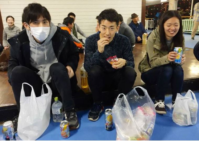<東海汽船:サルビア丸の中での参加者の撮影:Aさん、Yさん、Eさん>
