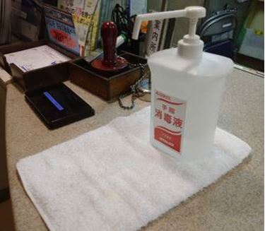 <東海汽船:サルビア丸の船内のアルコール設置/東海汽船からは、手の消毒に役立てて欲しいとのこと>