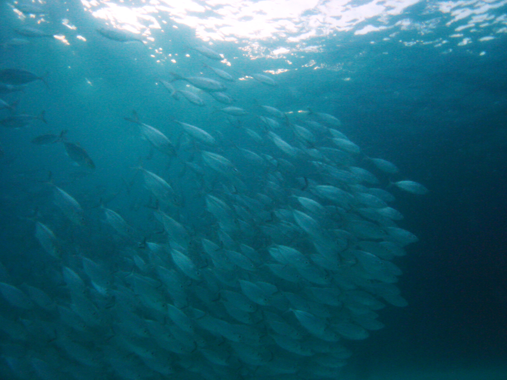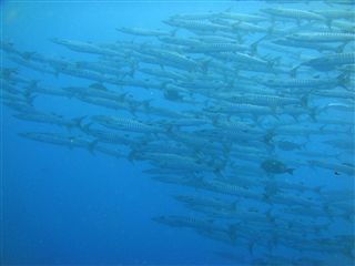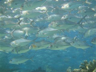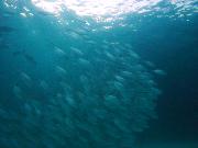 この写真を撮影中、気がつくとギンガメアジに囲まれてました:-o