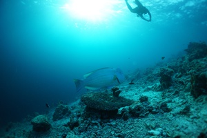 バラクーダを見るため水面で船に引っ張られてから潜水という裏技をつかいつつエントリー。