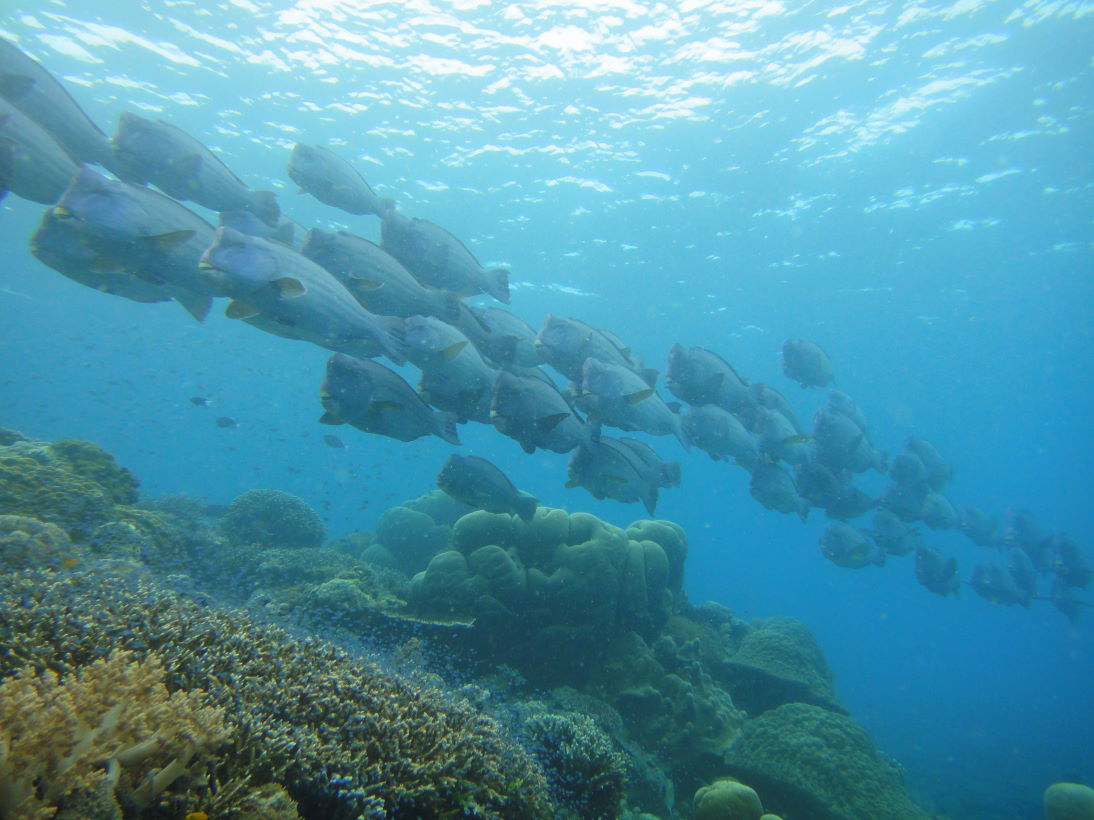 比較的浅場(-18m以深)で、しかも群れを成して観ることができます。