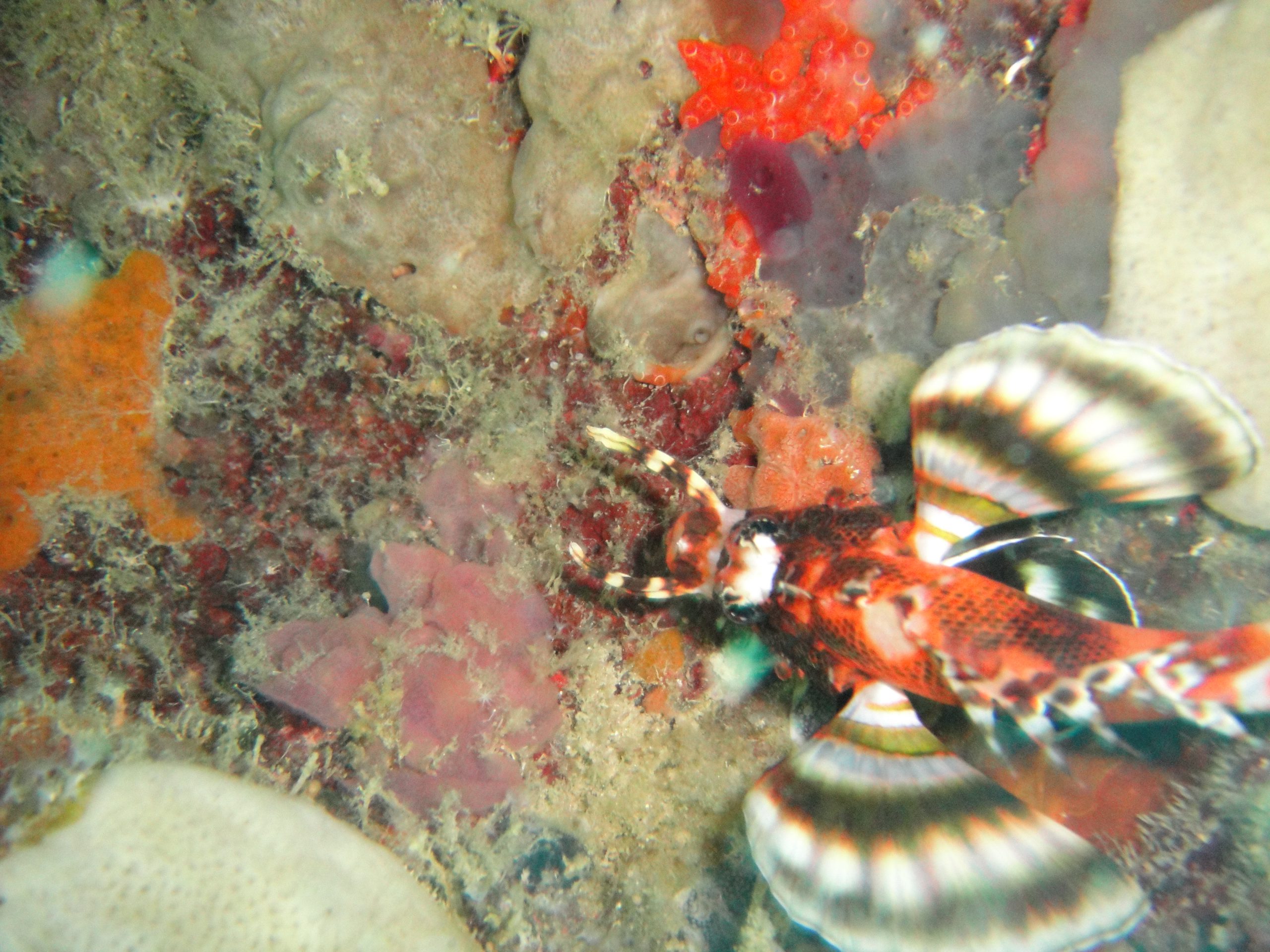 日本では深場(-25m以深)でしか見られないようなカラフルなハゼやハナダイ、甲殻類が
