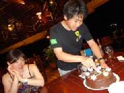 最終日晩餐にはサプライズ記念ケーキが届けられるという憎い演出をした幹事の”ザリガニ”M内くん