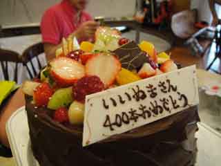 ツアー途中で400本記念を迎えたOI氏のためのケーキがこれ↓