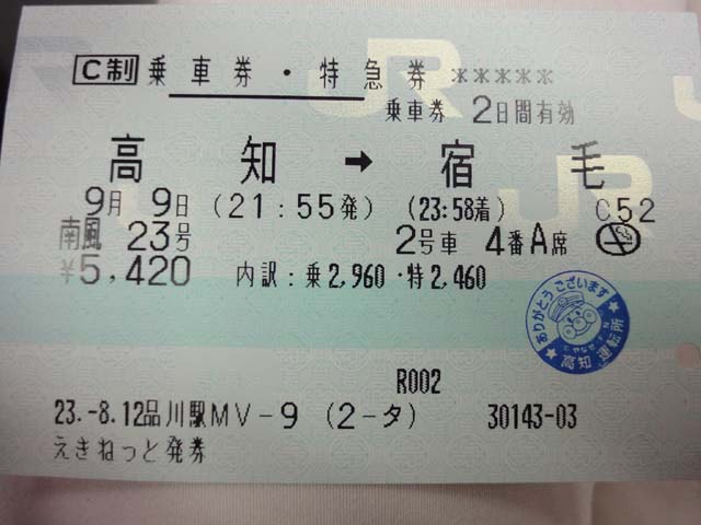 前出の記事で、南風23号に乗ったことはすでにご存じかと思いますが、私たちの目的地の 「宿毛」