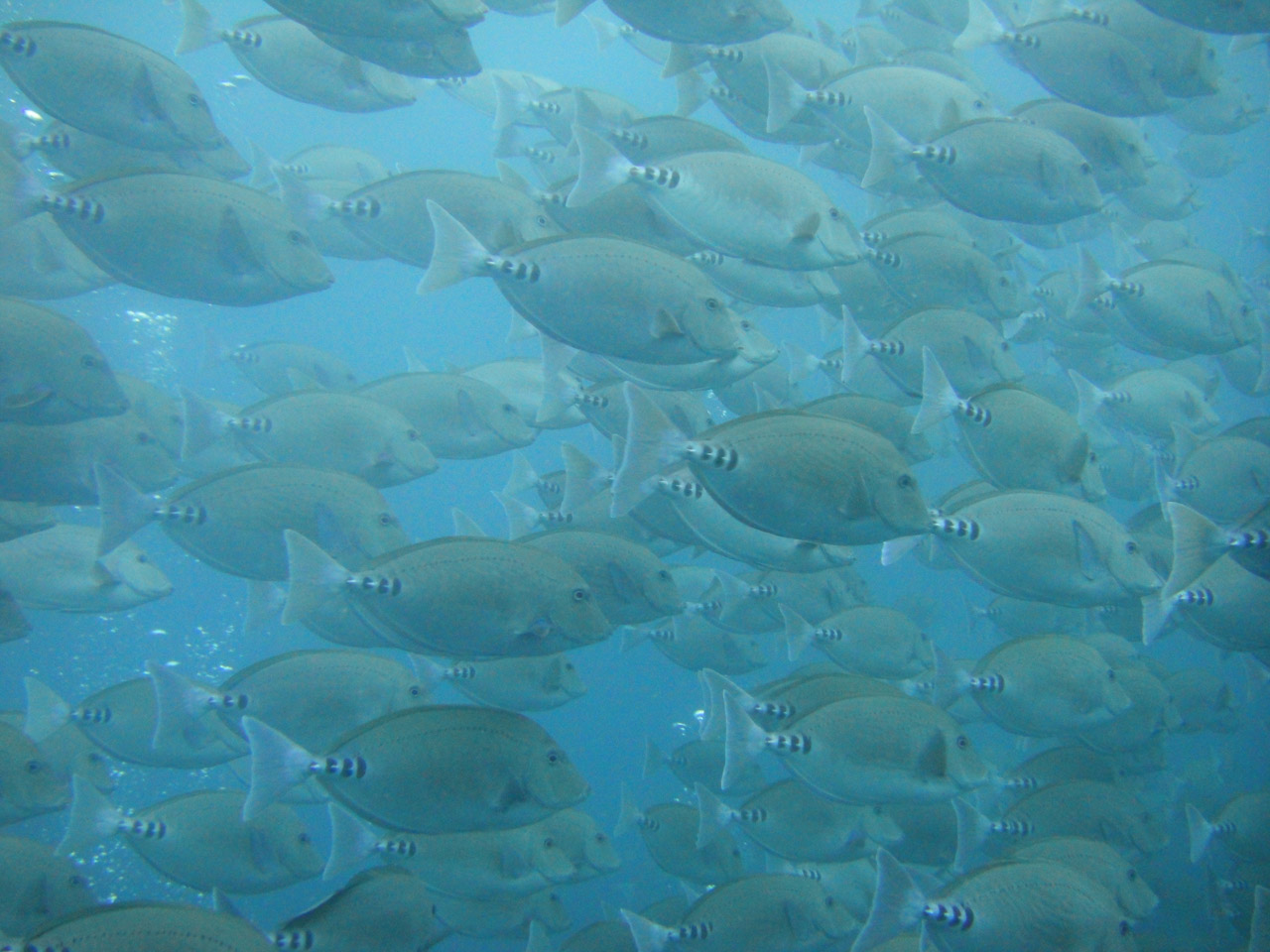 中層での安全停止中にニザダイの大群がすぐそばまでやってきました。