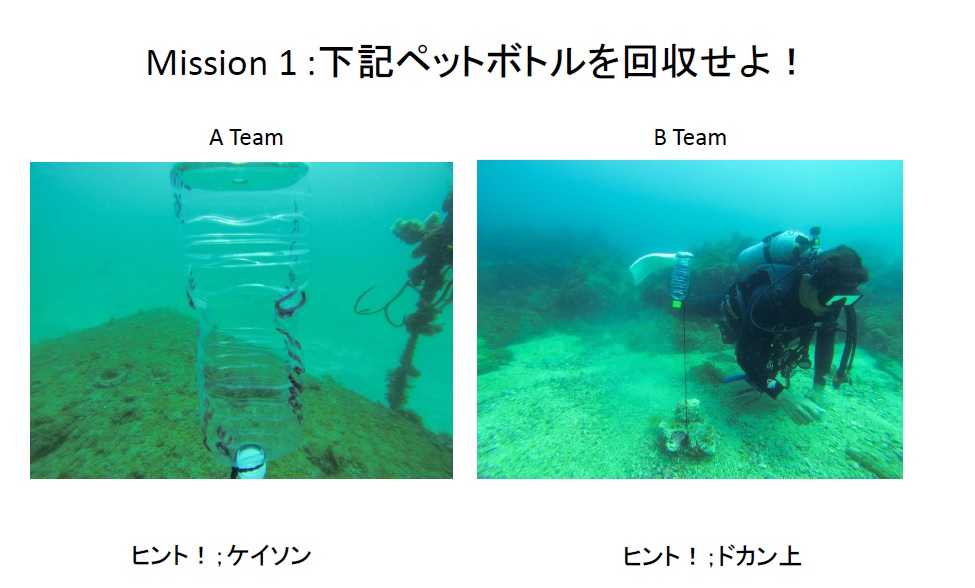 Bチームのミッション1(ペットボトル探し)は、ハンデを付けて少し難しめのポイントに設置されたそうで、