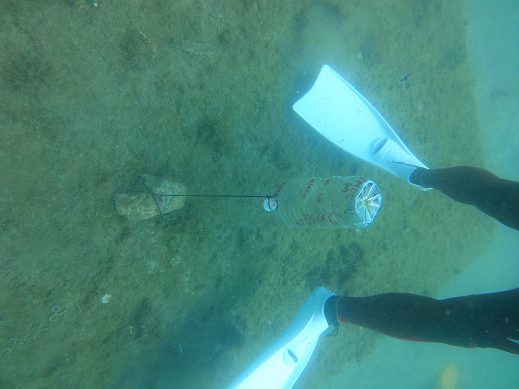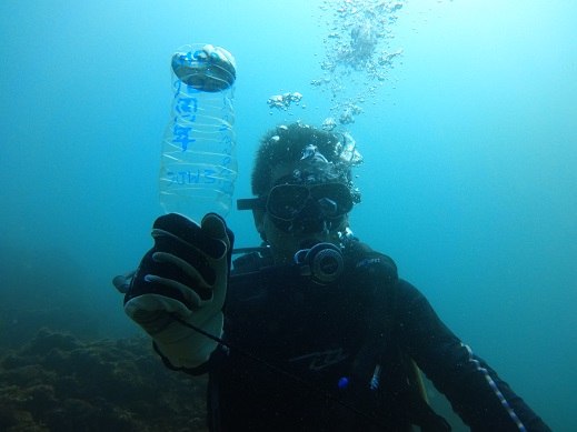 2ダイブ目、敵のチームのペットボトルを発見するやいなや、やはり、Hちゃんが、いたずらするも撃沈。