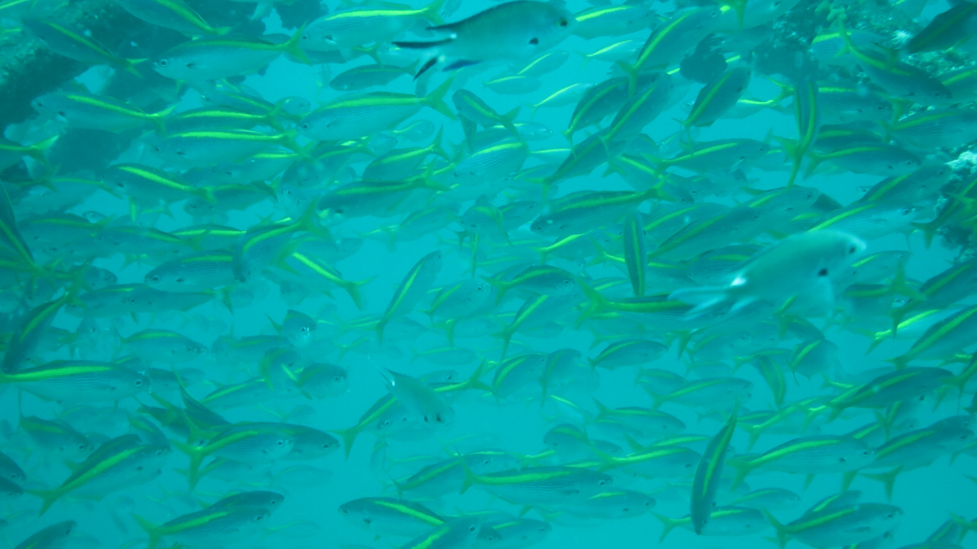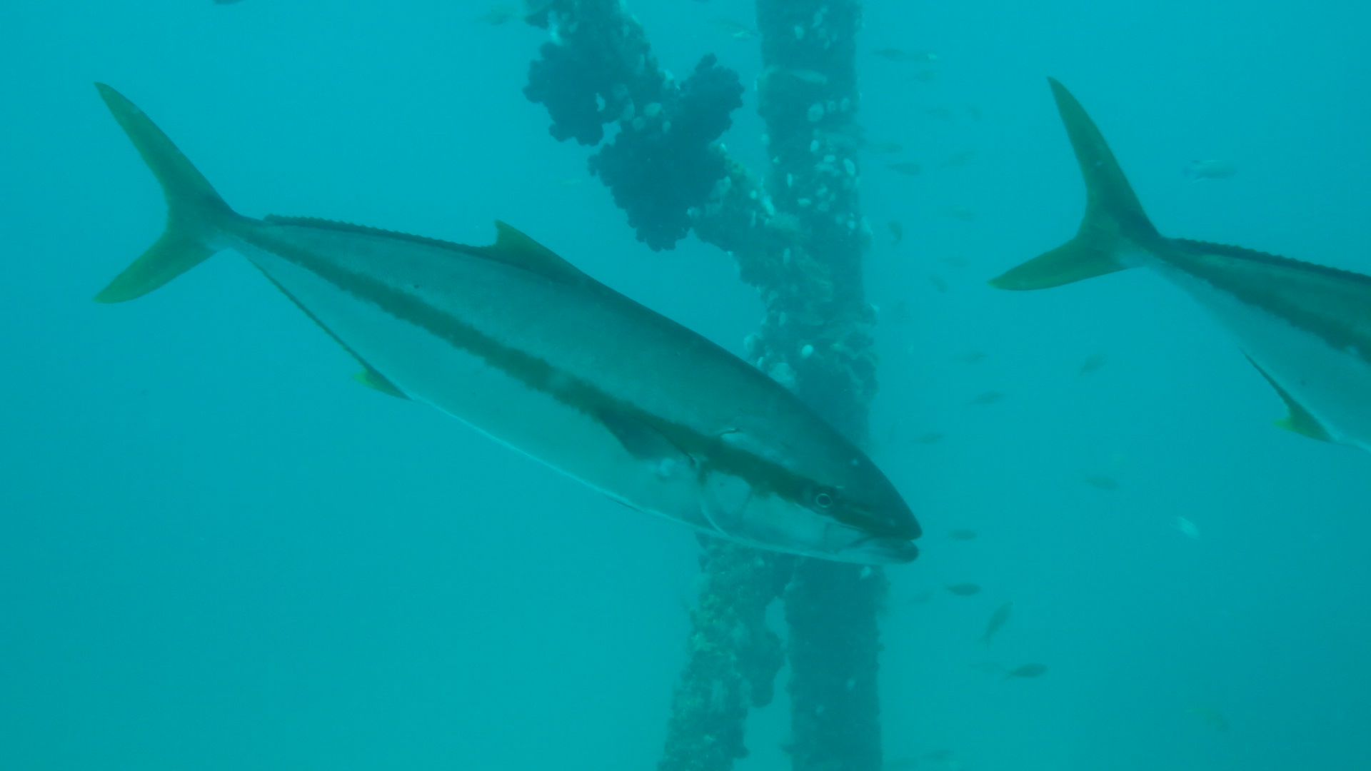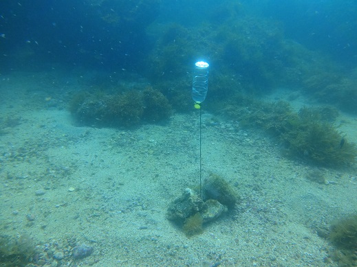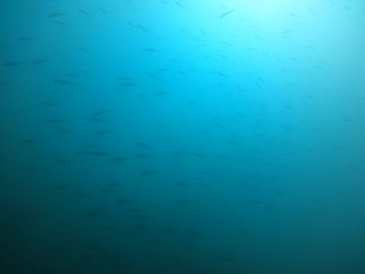 「スージー」のねぐらに向かって泳ぐことしばし、水中にキラリと光る何かを発見!