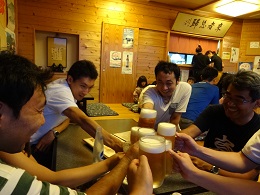 興奮も収まらない帰り道、みんなでお食事をということで、近くの海鮮居酒屋さんへ。