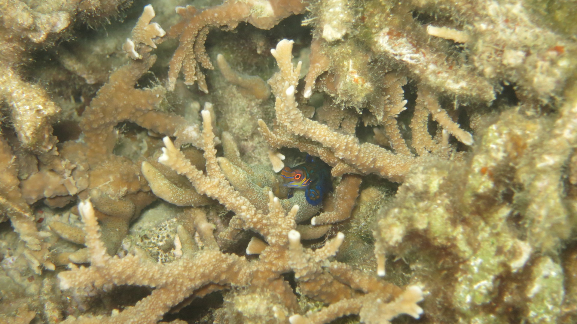 さらに進み、コケギンポやエビをじっくり観察していると、何やらいやな予感が・・・。