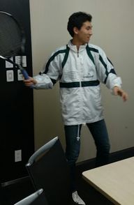 部室でもずっと素振りしてます。そしてちょっと上目線のイヤなヤツだけど