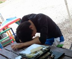 寝不足で頭痛に悩まされるひでき。波酔いも手伝って具合悪そうな初日。