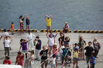 おかげで、甲板ではこんなに元気だった3人。