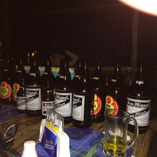 夜は店のビールの大瓶を皆で飲み尽くしました〜:pint: