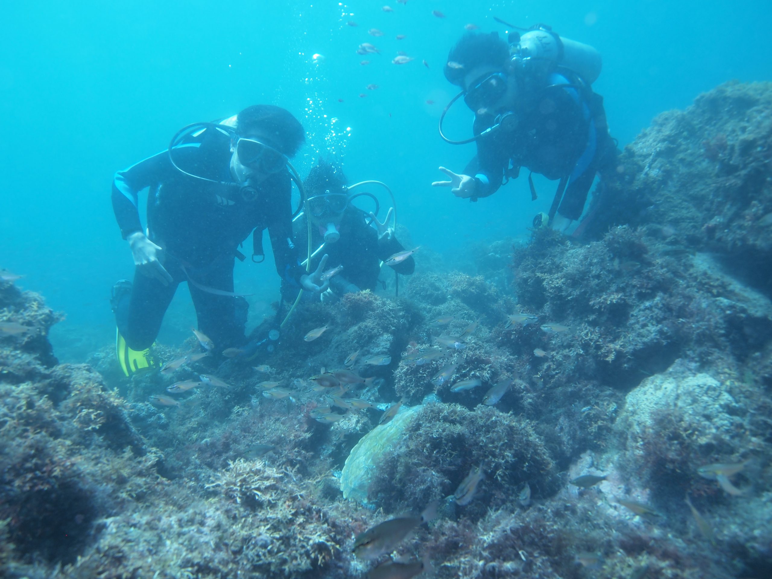 昨年入部したときに自分も早速川奈でウミガメのスージーと出会って、