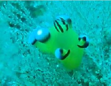 観た魚は、イロカエルアンコウ(レモン・3cm)、カエルアンコウ(オレンジ・6cm)、コブダイの幼魚、乙姫海老、テントウ海牛、ピカチュウ(ウデフリツノザヤ海牛)、マダイ、アジ、クマノミ。