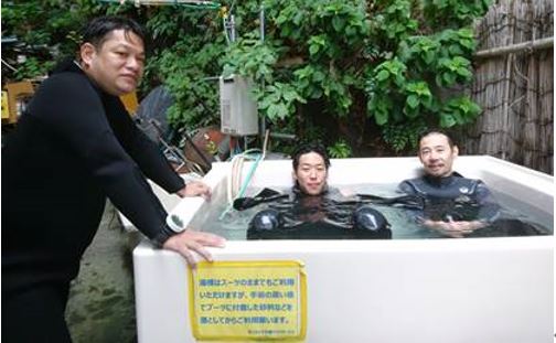 直ぐに、彼のみ先に、ウエットスーツを脱いで頂いて、現地施設のお風呂に入って頂き、着替えて頂きました。