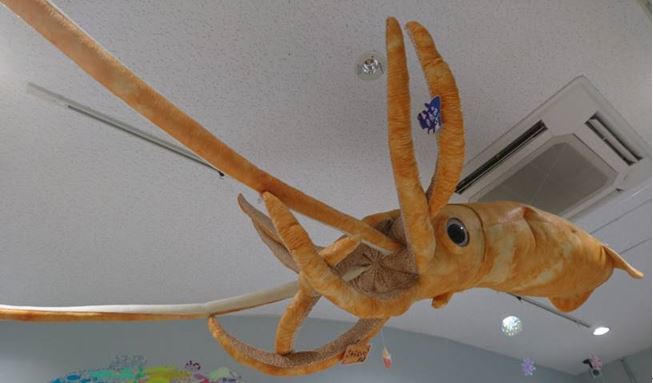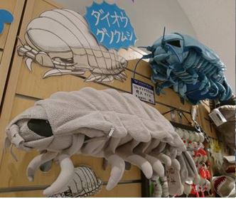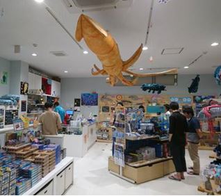 水族館のお土産コーナーには、ダイオウイカのオブジェや、ダイオウグソクムシの縫いぐるみも有りました。