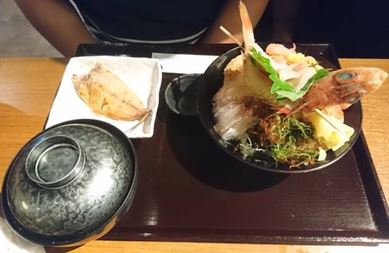 割引で、1600円の深海水族館チケットが、1000円になる理由から、この海鮮丼 佐政 で夕食を致しました。
