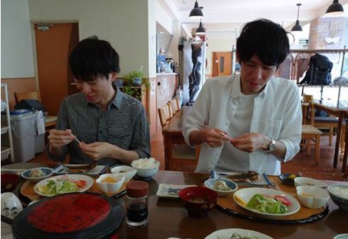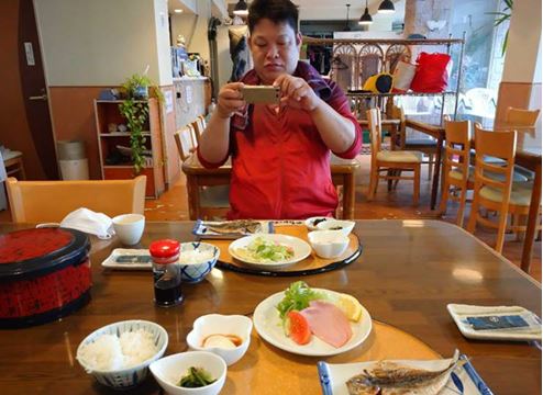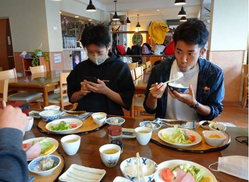 <サンライズ大瀬崎での朝食の様子: 朝食を食べる様子です。>