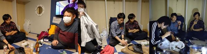 行きの船の部屋では、ゆったりと過ごし、夜2時頃まで飲んで過ごしました。