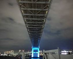 <さるびあ丸から観た景色です。綺麗なレインボーブリッジの夜景です。さるびあ丸は、新しく綺麗です。>