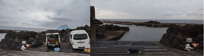 ●朝8時20分ぐらいに、八丈島の底土港に橘丸が到着です。現地の天気は、曇り空です。