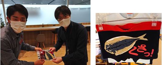<後輩からのお土産との事でT実行委員長ですが、後輩のY下さんから「くさやのパンツ」が手渡されました。たぶん、次回、はいている事でしょう。>