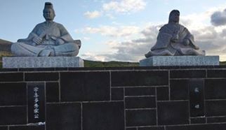 <宇喜多秀家と豪姫の像>